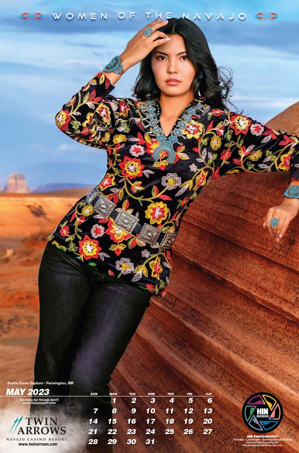 Sierra Joe de Shiprock, NM a honoré la couverture du calendrier 2023 Femmes du Navajo (La 26ème édition). Le calendrier 2023 a été labellisé « ReVisit & ReLive édition » après n'avoir pas été publié pendant 4 ans.Vêtements par : www.navajospirit.com
