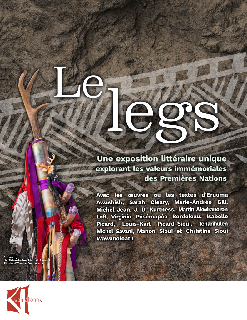 Du 1 mars prochain au 2 juin 2024, le Musée huron-wendat a la chance d’accueillir l’exposition temporaire Le legs, une réalisation de Kwahiatonhk! et Louis-Karl Picard-Sioui.